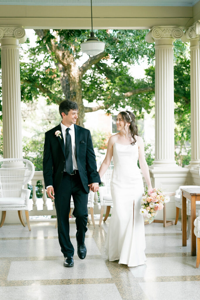 For receptions, the indoor parlor and outdoor terrace create an easy flow for guests, dancing, and portraits. Whether you’re going for timeless black-tie or something soft and romantic, the space adjusts effortlessly to your vision.